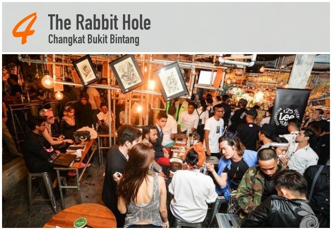 Located along the infamous street of Changkat Bukit Bintang, right in the heart of Kuala Lumpur, The Rabbit Hole is a must-go restobar. You will be impressed with its interior offering different concepts – the colourful and artistic graffiti bar perfect for casual gatherings with friends, the green laser dance club room where the walls, DJ console and bar are made of 3-Dimensional Origami Art, and the chic and comfy Arthur's Lounge which bears resemblance to an old English gentlemen's club. Concerning the drinks the bar offers a wide array of beers and cocktails with signature fantasy-themed drinks like Mad Tea Party and Firefall. This very original and unique concept bar is designed and builds around inspirations of the well-known fantasy narratives of Alice in Wonderland & Narnia Chronicles. Reservations are highly recommended.