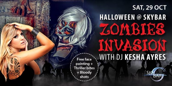 Zombies Invasion with DJ Kesha Ayres at SkyBar on this October 29, Saturday! The award-winning SkyBar, one of the city's most popular rooftop bars, is located high up on the 33rd floor of Traders Hotel, Kuala Lumpur, and features a variety of cocktails, nightly DJs and amazing views of the Petronas Twin Towers from its cabana booths. Free face painting + Triller bites + Bloody shots will be available on the Halloween night!