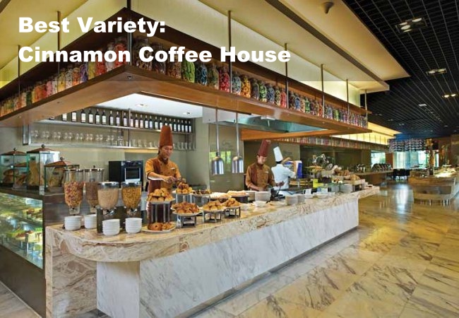 Amongst its many stations, the Cinnamon Coffee House boasts after its Japanese, Indian, Pasta and Dessert sections. The restaurant also has a Live Grilled Corner, Live Cooking of Special Noodles of the Day and Live Pasta station dishing out a continuously flow of piping hot pastas. To keep things interesting, Cinnamon Coffee House changes its buffet dinner theme monthly.