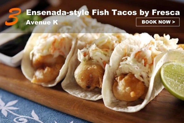 Check out Fresca’s signature Ensenada-style Fish Tacos – flour tortillas with beer-battered fish and homemade coleslaw. This classic fish taco originates from Ensenada, Baja California. Not exotic enough? Try their Teriyaki-Wasabi-Mayo Fish Tacos with teriyaki drizzled battered fish, wasabi mayo, cucumber and black sesame!
