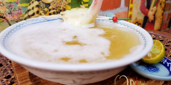 Asam Laksa lovers wouldn't want to miss this. The famous spicy noodle dish is recreated into a pleasant sweet and sour cocktail with spiced rum, pineapple juice, calamansi juice, ginger flower leaf, assam boi and its of mint. Have a sip of this exotic, jaw-dropping Asam Laksa Cocktail at Opium where the interior is inspired by the Opium regimes of the east.